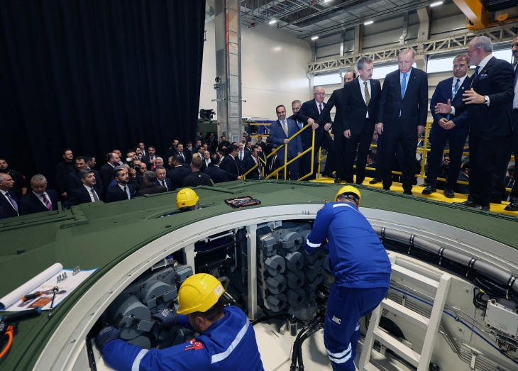 – Целта што си ја поставуваме со тенкот „Алтај“ е да не зависиме од никого за најважните делови при неговото производство. Како што сега го достигнавме овој степен, и покрај ембаргото врз земјата, и оттука натаму ќе продолжиме успешно по тој процес. Го кажувам ова секој пат и денес ќе го повторам: тешкотиите што се појавуваат на патот кон постигнувањето на нашите цели можат само да нè забават. Можат да нè натераат малку да задоцниме, но во никој случај не можат да нè спречат да стигнеме до нашиот обем. Или ќе најдеме пат, или ќе пробиеме пат, но на крајот ќе ги постигнеме нашите цели. Верувам дека оваа стратешки и исклучително високо модерна фабрика ќе нè доближи за уште еден чекор кон нив – рече турскиот претседател и нагласи дека неговата земја е на 11-то место во извозот на воени технологии и има над 1.400 проекти во одбранбената индустрија.