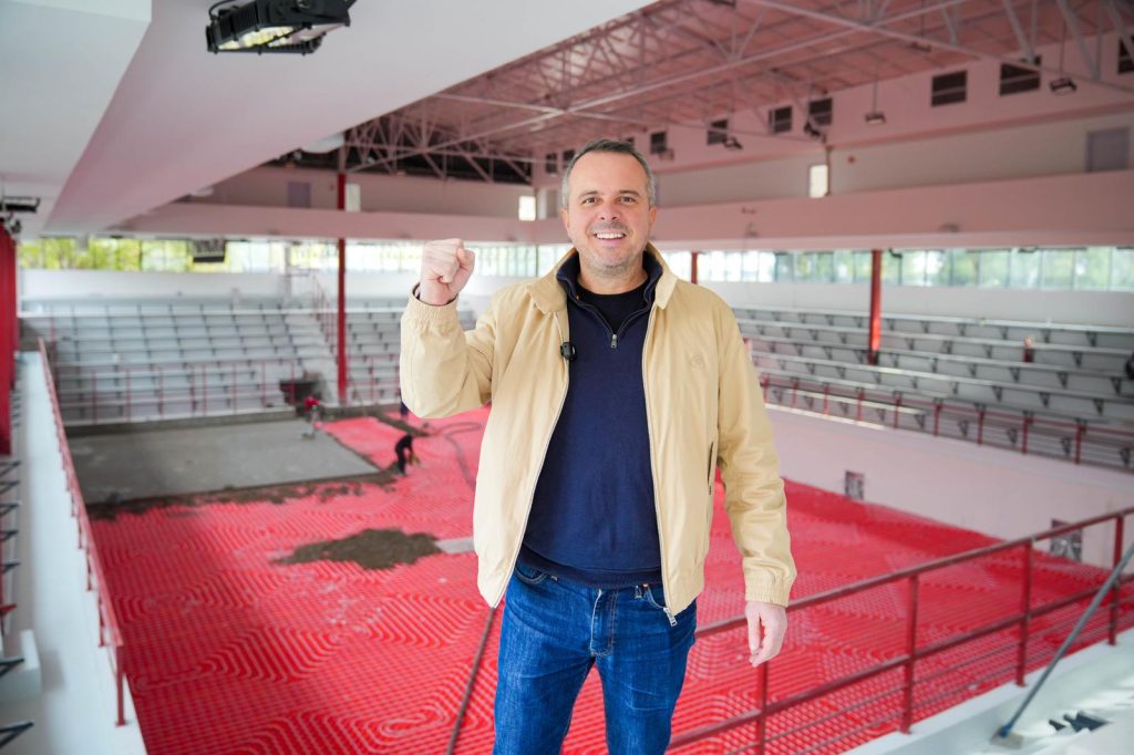 Поставен e централен семафор, а целосно се завршени осветлувањето и озвучувањето во салата. Се комплетираат трибините. Сите приоди се изведени, тоалетите се целосно опремени, се прават подготовки за поставување подно греење, а инсталациите и горниот простор наменет за федерациите се финализираат.