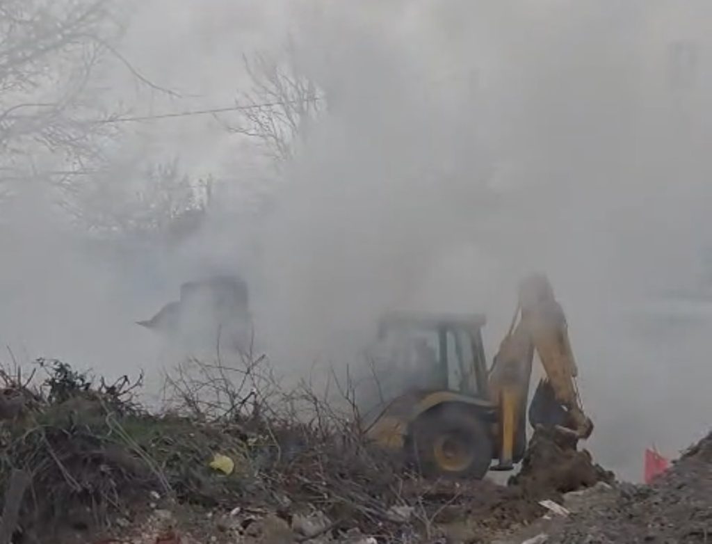 Пожар избувна попладнево во скопската населба Маџари, каде што гори отпад, создавајќи густ црн чад што се шири во околината.