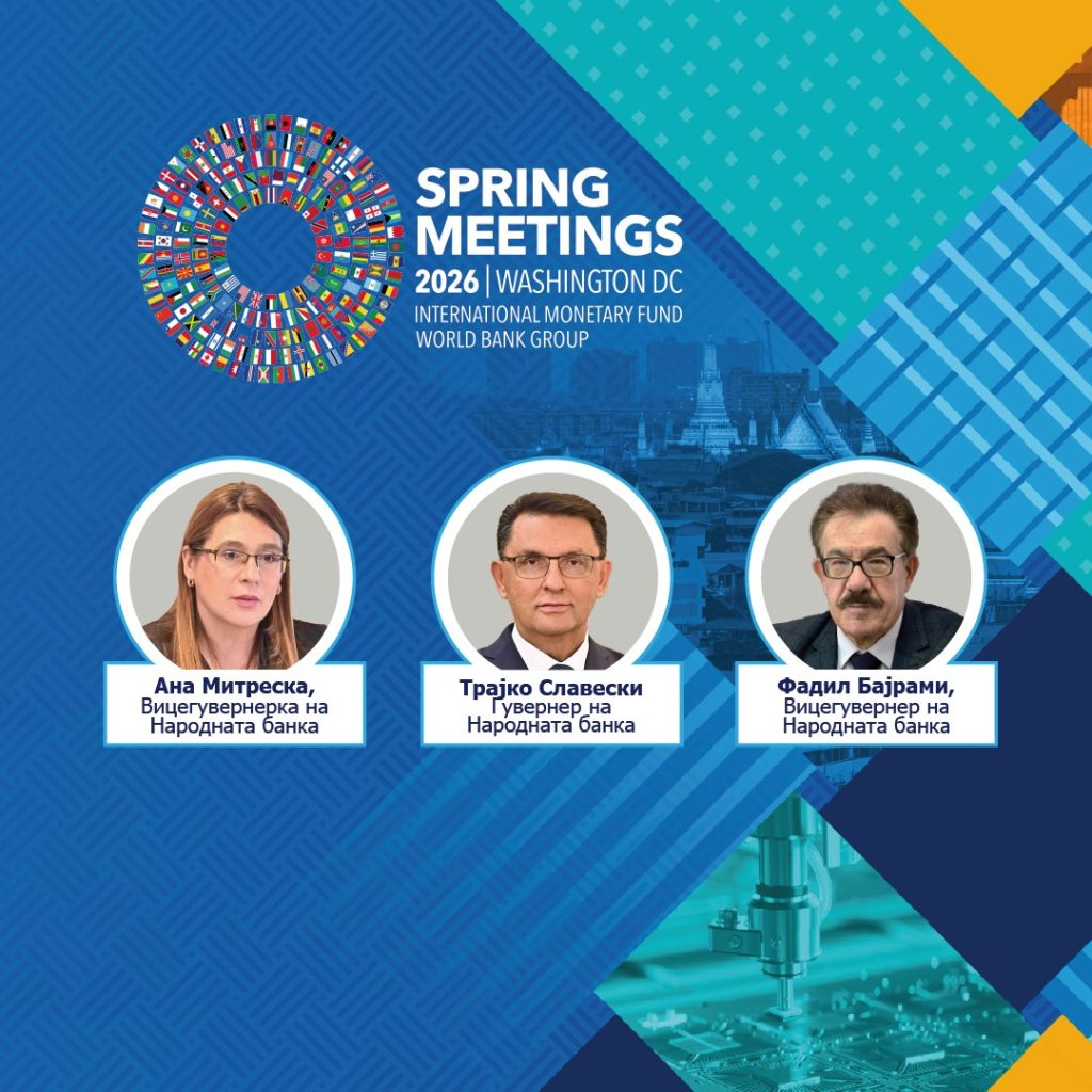Гувернерот на Народната банка д-р Трајко Славески и министерката за финансии Гордана Димитриеска-Кочоска ја предводат делегацијата од нашата земја којашто учествува на Пролетните средби на групацијата на Светскатa банка (СБ) и Меѓународниот монетарен фонд (ММФ) во Вашингтон, САД. Како дел од делегацијата на Народната банка, на овие средби, ќе земат учество и вицегувернерите Ана Митреска и Фадил Бајрами.