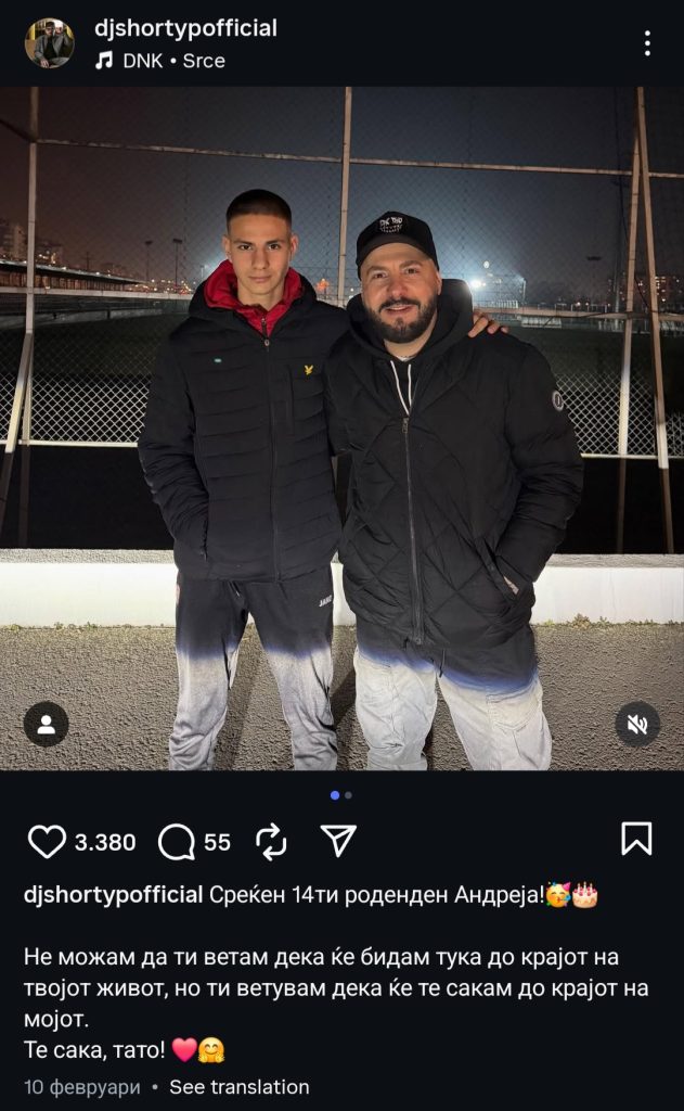 „Среќен 14-ти роденден Андреја. Не можам да ти ветам дека ќе бидам тука до крајот на твојот живот, но ти ветувам дека ќе те сакам до крајот на мојот. Те сака, тато!“, пишува во објавата со која Панчо преку Инстаграм му го честиташе 14-от роденден на својот наследник.