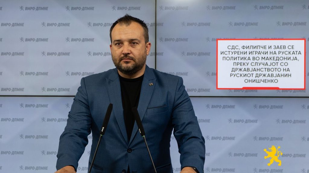 СДС, Филипче и Заев се истурени играчи на руската политика во Македонија. Доказ за тоа е скандалот со доделувањето на државјанство на рускиот државјанин Онишченко, човек кој е осуден на затворска казна од 15 години за перење на пари и корупција во Украина.