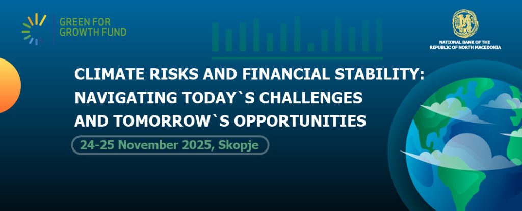Народната банка и Фондот за зелен развој (GGF − Green for Growth Fund) организираат Конференција за климатските ризици и финансиската стабилност, којашто ќе се одржи на 25 ноември во Скопје. Настанот претставува значаен чекор кон унапредување на дијалогот и поддршка на финансискиот сектор во приспособувањето на економијата кон зголемените климатски предизвици.