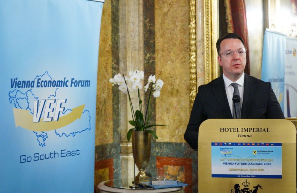 ” Благодарам за поканата и за оваа можност. Ќе започнам со она што сега е најважно прашање, а тоа е она што се случува во Европа. Сојузната министерка спомена дека е родена во 1994, а Австрија се приклучила во 1995. Јас ќе ви раскажам поинаква приказна, роден сум во 1984, а кога веќе бев во средно училиште, станавме прва земја во регионот која ја потпиша Спогодбата за стабилизација и асоцијација, како што се нарекуваше во тоа време и станавме придружна членка на ЕУ. Од тогаш имаме договор за слободна трговија, за слободно патување итн. Веќе во 2008 година, кога веќе бев во првиот мандат како пратеник во Собранието, најмладиот во тоа време, ја добивме првата препорака за отворање на пристапни преговори, a во 2009 веќе го добивме и првото вето за отворање на преговорите. И тоа вето се’ уште трае. Прво беше од нашата јужна граница, сега е од источната граница и за жал, се соочуваме со она што го има кажано Черчил во времето на Втората светска војна дека “Балканот произведува премногу историја и Европа не може да ја испроцесира”. Мислам дека никој не веруваше дека во 21-от век ќе има војна на европско тло и мислам дека таа перцепција дека само позитивни работи ќе се случуваат во Европа, дека ќе има постојан економски раст, дека ќе зборуваме само за прашања поврзани со храна, остави простор за Европската Унија да биде релаксирана, да остави процесот да тече сам, ако се случи – добро, ако не се случи – нема проблем, секако се дел од континентот, сега зборувам за целиот Западен Балкан, но она што се случи во 2021 година, сметам дека е аларм за сите нас, бидејќи мислевме дека нешто сме оставиле зад нас, а тоа ни се враќа. Повторно зборуваме нуклеарни проби, ракетни системи, за радари, дронови, анти-дронови, зборуваме за војна, за милиони изгубени животи досега, што не’ води до реалноста дека европскиот континент е само мал дел од слобода, демократија и економски просперитет и за жал, некои од големите играчи го перципираат светот поинаку од нас, не ги споделуваат нашите вредности, нашите заеднички цели и не живеат како што живееме ние и сакаат конфликт наместо просперитет. И затоа сметам дека ако треба да се запрашаме кој е најслабиот дел од европскиот континент, некои ќе речат Грузија, некои Молдавија, јас би рекол дека е Западен Балкан. И затоа сметам дека фокусот е многу важен – јасен фокус и јасна визија. Она што ме плаши и ќе бидам искрен е дека ќе се разбудиме во 2029 година, тука, ако не’ поканите и се’ уште ќе зборуваме за проширувањето, дека ќе биде убаво и дека ќе се случи. Бидејќи ова не е првпат да сме тука, да има динамика. Во 2000 беше Самитот во Солун, потоа во 2007 кога се приклучија Бугарија и Романија, ни велеа дека ние сме следните, а да не ви ги кажам сите отворени прозорци за кои сме слушале и сите клучни моменти. Она што е позитивно е што енергијата во регионот се’ уште е висока, јавното мислење е во полза на приклучување на Европската Унија и другите сили се’ уште не ѝ се конкуренција на ЕУ. Но прашање е дали тоа ќе биде засекогаш и затоа сметам дека треба да бидеме мудри и храбри, но и да зборуваме отворено и директно и да бидеме фер: ако нема проширување, тогаш да видиме што ќе се случува, ако е пакет, тогаш да дискутираме дали може да функционира или не. Подобро е на луѓето да им се каже вистината отколку постојано да ги лажеме или да им даваме лажни ветувања или да п