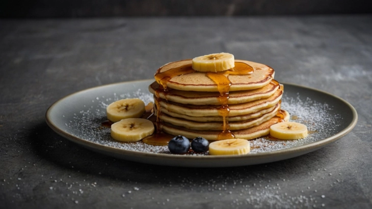 Изгмечете ја бананата со лажица мед и едно јајце, во сад. Додадете млеко и просеано брашно со прашок за пециво. Добро изматете. Потоа додадете мелени бадеми. Смесата е погуста од смесата за класични палачинки. Загрејте го маслото во тава, потоа ставете мала лажица од смесата и пржете додека убаво не порумени од двете страни.