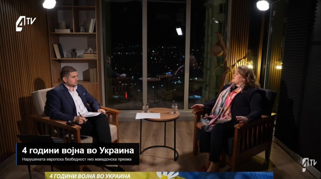 Поранешната министерка за одбрана Славјанка Петровска во гостување на 4TV.mk, во емисијата „4 години од војната во Украина“, изјави дека комуникацијата околу донирањето воена опрема за Украина се одвивала првенствено на билатерално ниво.