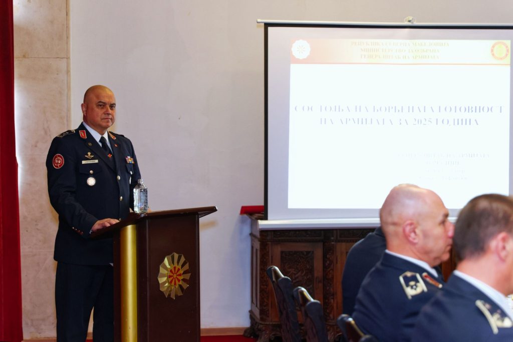 Во рамки на реферирањето, кое го одржа началникот на Генералштабот на Армијата, генерал-мајор Сашко Лафчиски, претседателката Сиљановска-Давкова се запозна со реализираните задачи и достигнувања на Армијата во 2025 година, според следните области: персонал, обука и вежби, опрема и инфраструктура, воено планирање и структура на силите, модернизација и опремување, како и буџет и финансии.