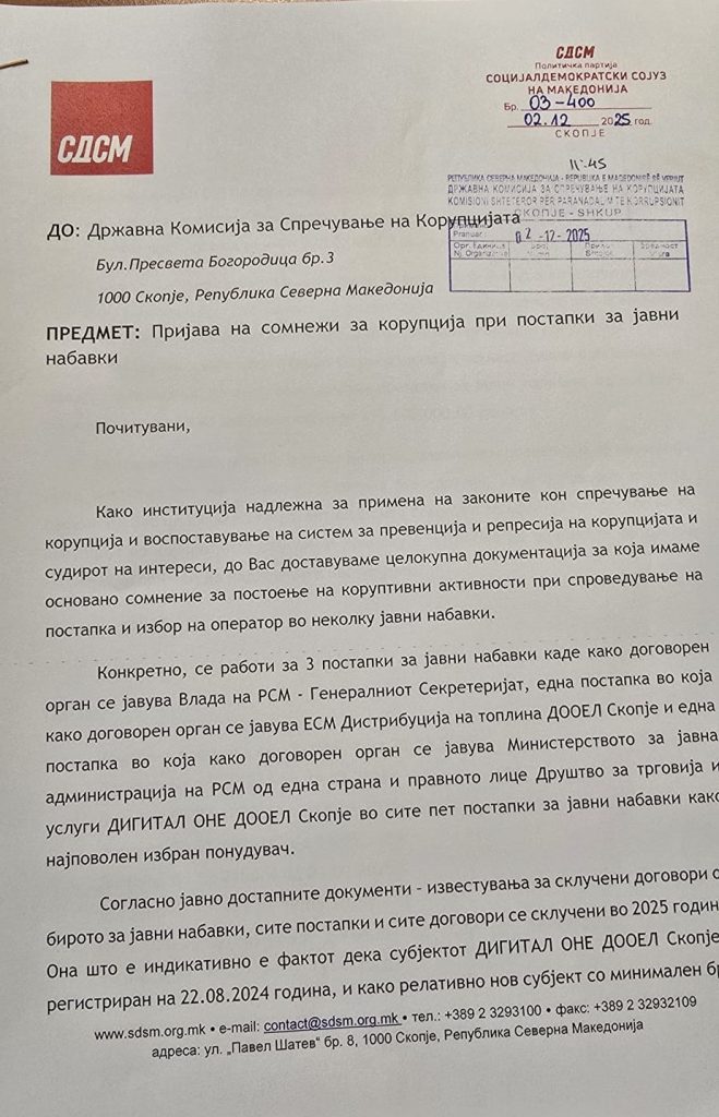Денеска ја поднесуваме пријавата, бараме ДКСК да отвори предмет, да спроведе постапка и да ги испита сите елементи.