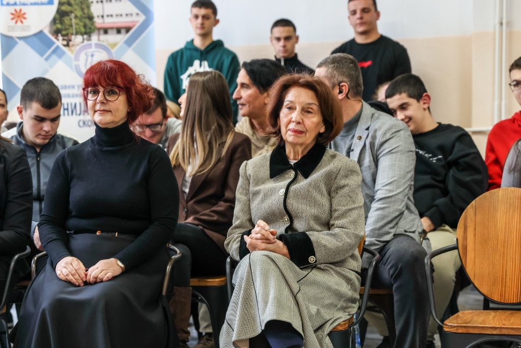 На свечениот настан, што се одвиваше и на знаковен јазик, се обрати директорката на единственото средно училиште за ученици со оштетен слух и говор во Републиката, раскажувајќи ја долгата, богата и недовршена приказна за многуте генерации посветени професори и вредни ученици, чија желба за учење била крунисана со бројни награди, пехари и медали.