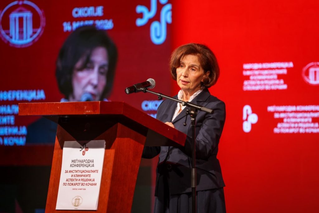Претседателката Гордана Сиљановска-Давкова се обрати на завршната сесија на Меѓународната конференција за институционалните и клиничките аспекти и решенија по пожарот во Кочани, што се одржа денеска во Скопје во организација на Владата.