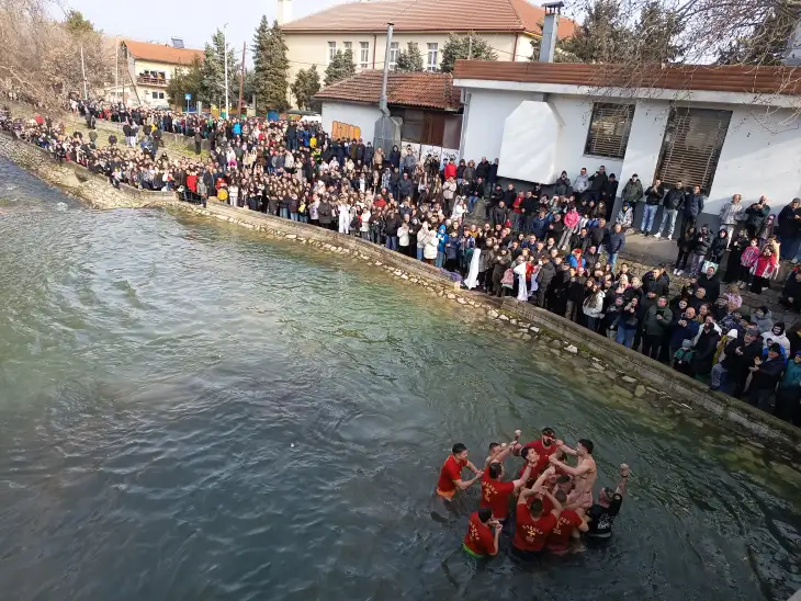 Во студената вода на реката што го дели градот на два дела, по светиот крст влегоа дваесетина лица.