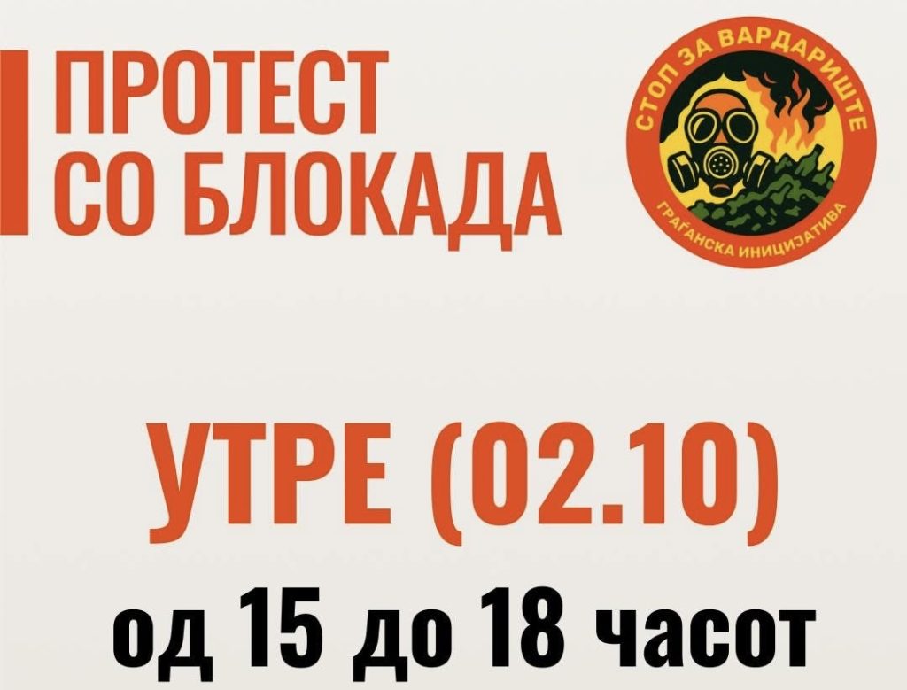 Граѓанската иницијатива „Стоп за Вардариште“ од утре ќе започне со протести кои ќе се одржуваат секојдневно во терминот од 15 до 18 часот, со блокада на мостот „Близнак“.