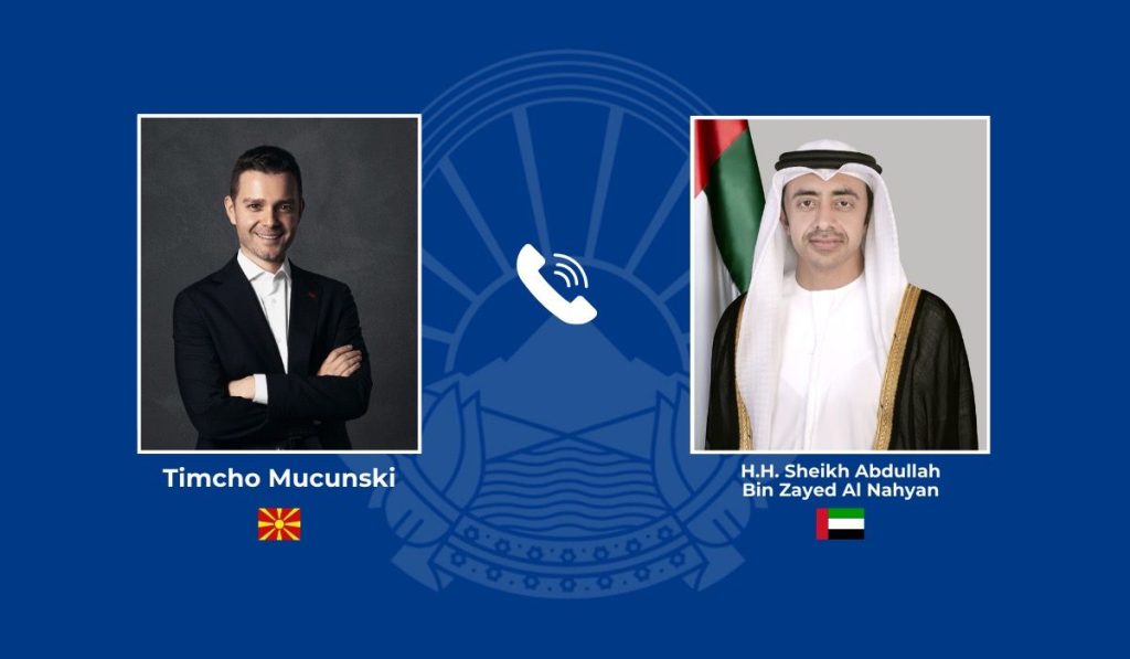Министерот за надворешни работи и надворешна трговија, Тимчо Муцунски, оствари телефонски разговор со заменик-премиерот и министер за надворешни работи на Обединетите Арапски Емирати, шеикот Абдула бин Зајед Ал Нахјан.