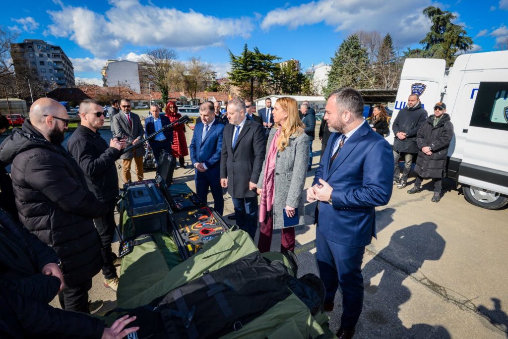 Министерот за внатрешни работи Панче Тошковски денеска во кругот на министерството присуствуваше на предавање на опрема обезбедена во соработка со Американската амбасада во Македонија и програмата АТА. Се работи за донација за опрема за потребите на Единицата за откривање и демонтирање на експлозивни средства и направи во Секторот за борба против тероризам, насилен екстремизам и радикализам при Одделот за сузбивање на организиран и сериозен криминал.