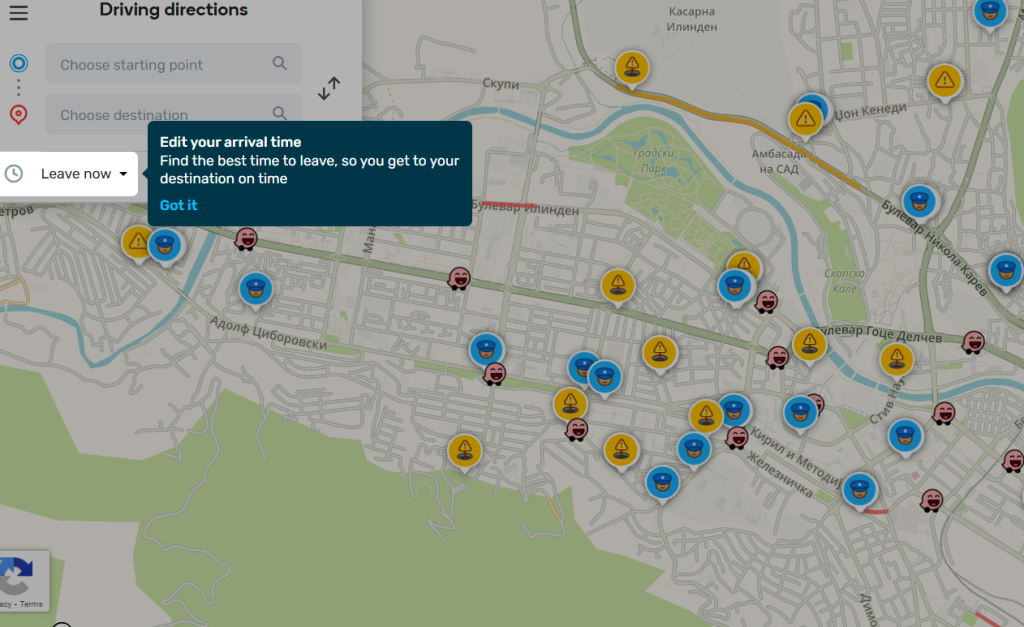 Сè почесто го користат Waze, апликација која станува најпопуларен сообраќаен асистент бидејќи ги прикажува скоро сите точки каде што се поставени камери. Оваа навигациска алатка нуди информации во реално време за состојбата на патиштата, а од вчера, благодарение на активноста на корисниците, речиси целата мрежа на камери од проектот „Безбеден град“ веќе е обележана на мапата.